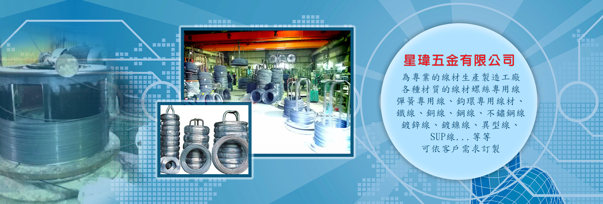星瑋五金有限公司 - 我們提供各種規格的線材產品,以滿足客戶的需求。我們的細線範圍從0.2mm到0.6mm,含碳量包括62A、72A和82B。以下是我們所提供的一些線材產品:鐵線, 鋼線, 異形線, 銅線, 黃銅線, 鍍鋅線,,, 106螺絲線, 1008低碳鋼線, 1015鋼線, 合金鋼螺絲線, 硼鋼螺絲線, 中碳鋼螺絲線, 六角鋼螺絲線, 不銹鋼螺絲線, 302HQ螺絲線, 410螺絲線。